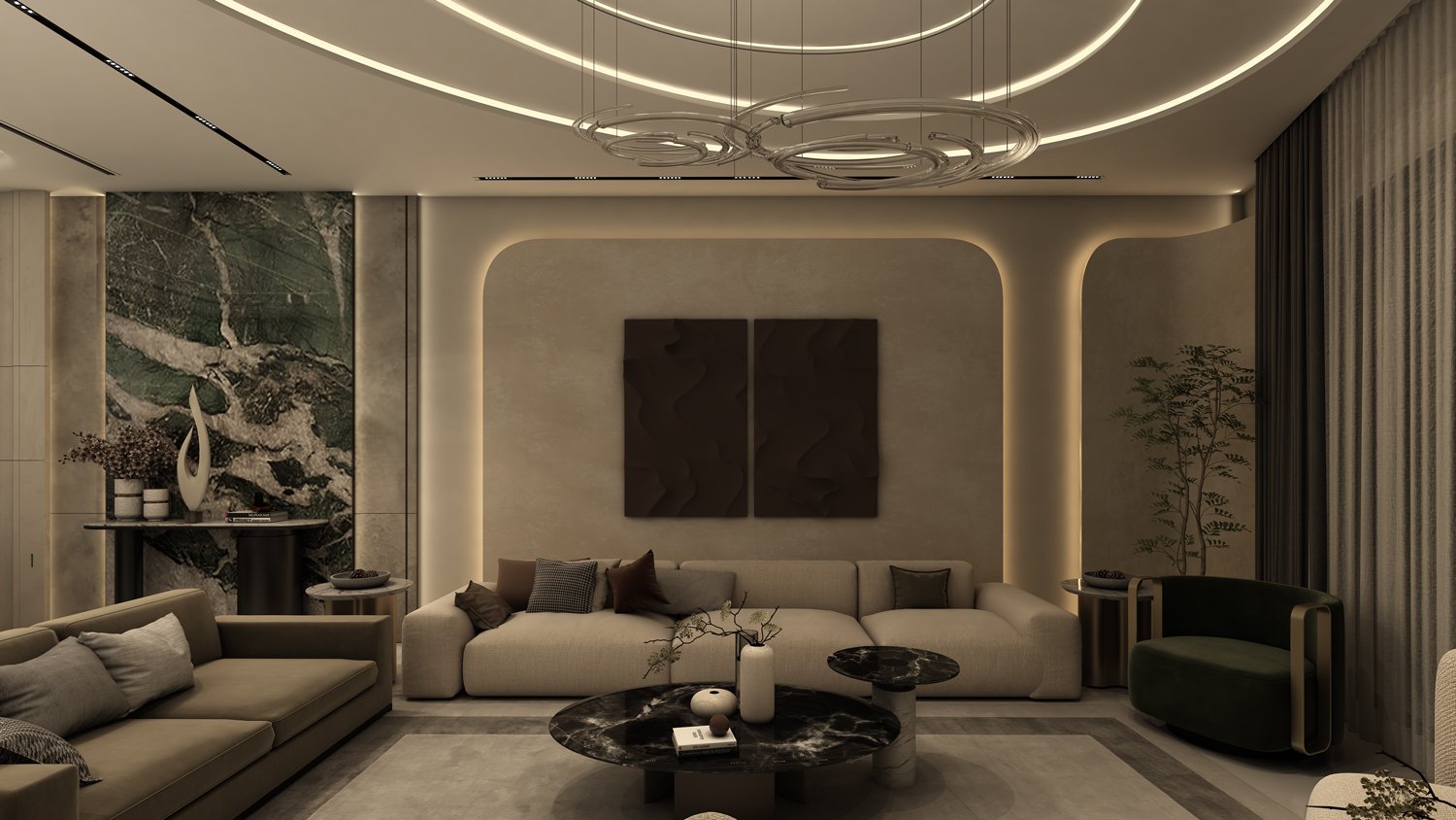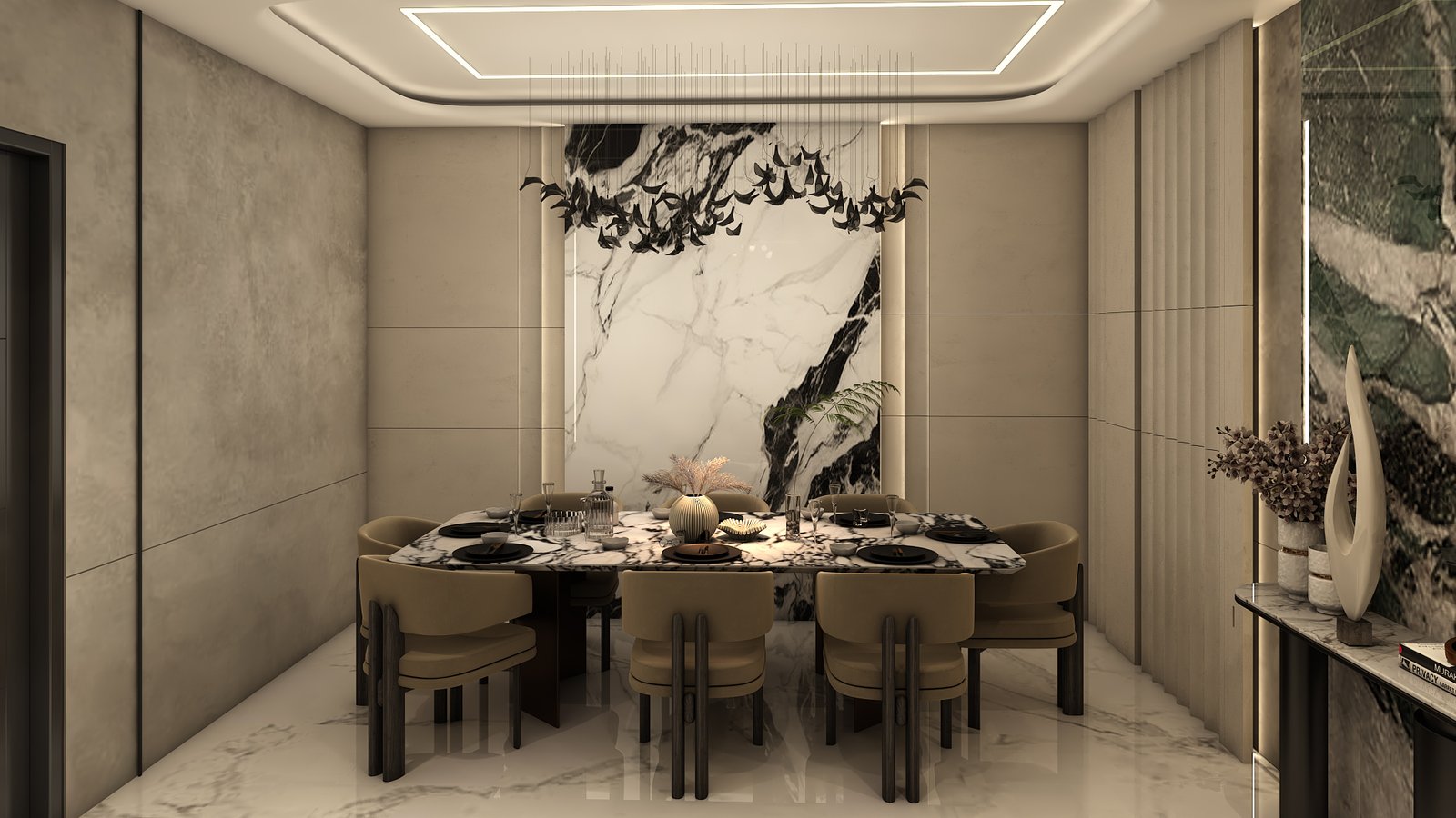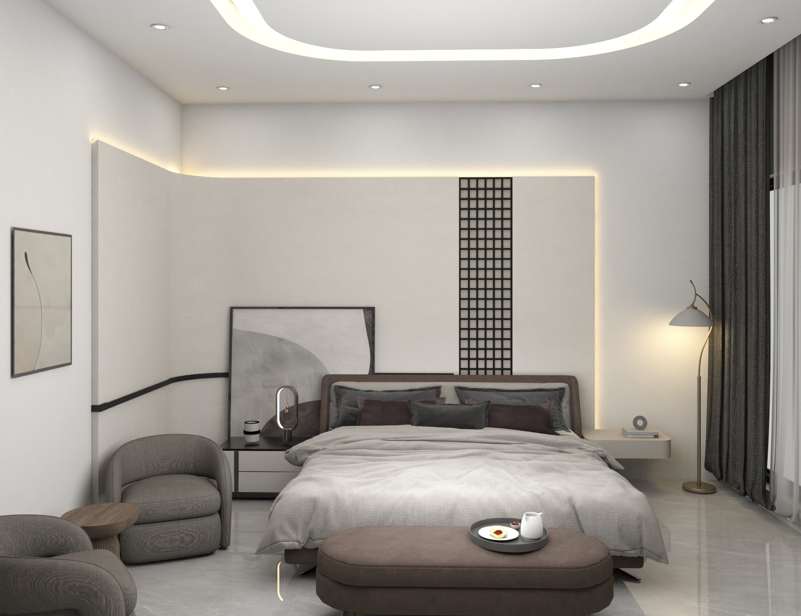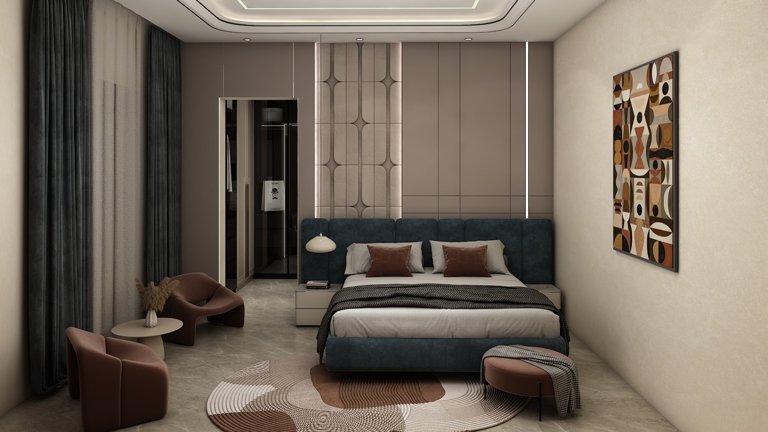 The interior design of Mr. Khawar’s home is an elegant combination of contemporary grandeur and pleasant living, customized to suit the client’s tastes and way of life. To create a calm yet sophisticated atmosphere, the design places a premium on clean lines, proportions that are harmonized, and a neutral color scheme with well-placed accents. From the living areas to the private rooms, every place is created with comfort, practicality, and style in mind. To improve visual harmony and spatial flow, premium materials, ambient lighting, and unique furnishings are combined. The overarching idea is to create a relaxing, inviting house with a conventional look that goes well with modern living.