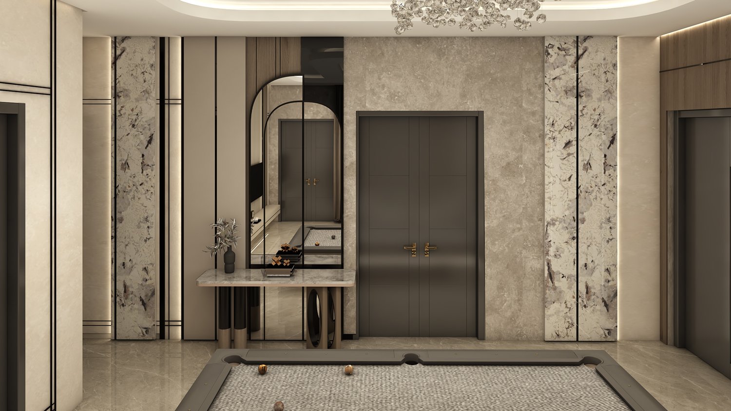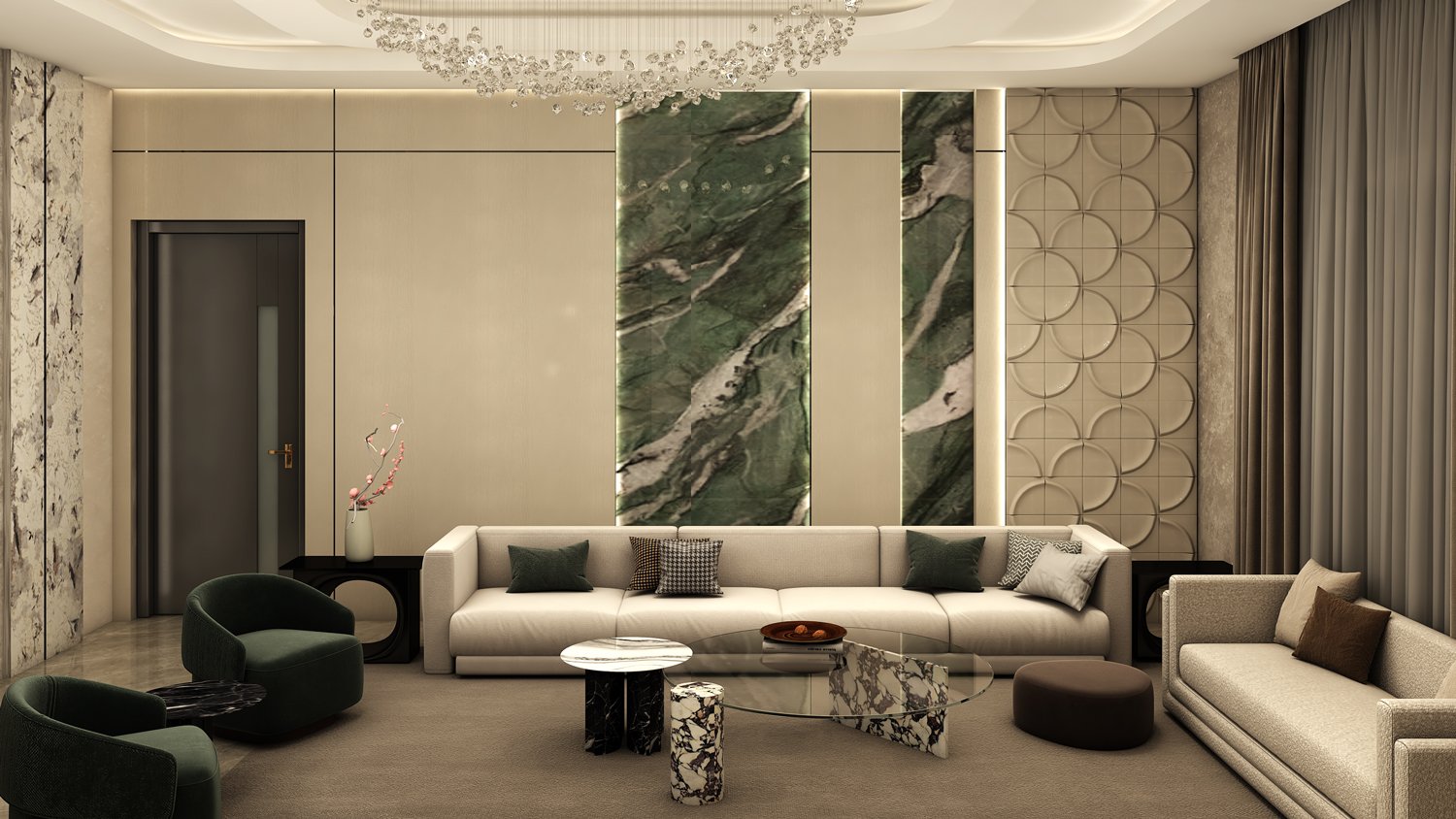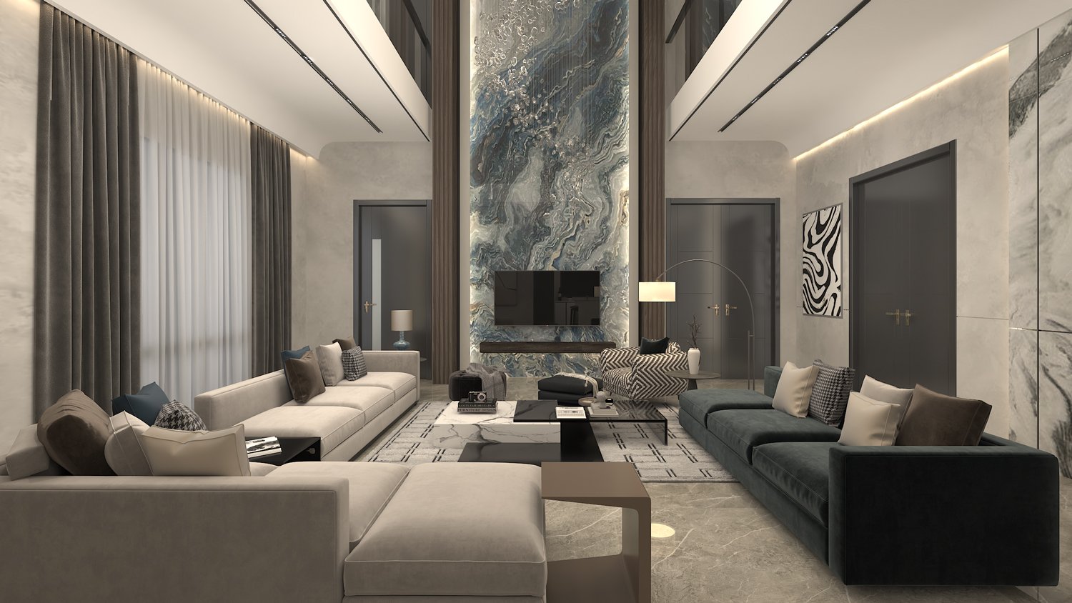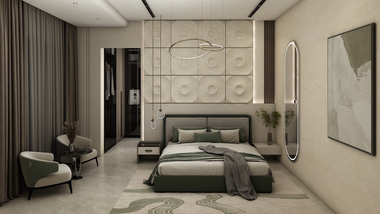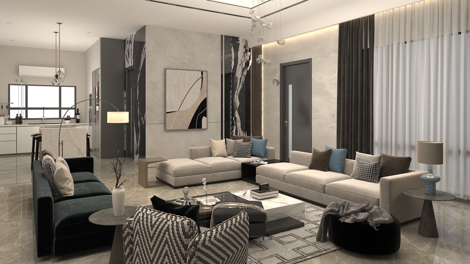 The interior design of Mr. Khawar’s home is an elegant combination of contemporary grandeur and pleasant living, customized to suit the client’s tastes and way of life. To create a calm yet sophisticated atmosphere, the design places a premium on clean lines, proportions that are harmonized, and a neutral color scheme with well-placed accents. From the living areas to the private rooms, every place is created with comfort, practicality, and style in mind. To improve visual harmony and spatial flow, premium materials, ambient lighting, and unique furnishings are combined. The overarching idea is to create a relaxing, inviting house with a conventional look that goes well with modern living.